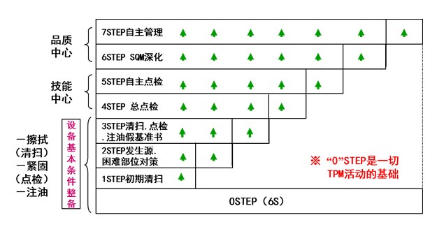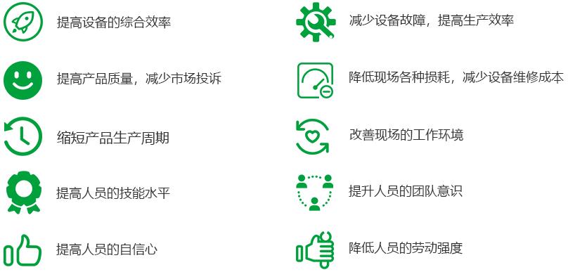 全員參加:指設(shè)備的計劃、使用、維修等所有部門都要參加,尤其注重的是操作 者的自主小組活動