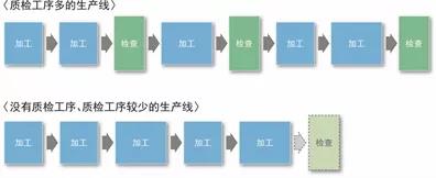 此外,質(zhì)檢工序還會打亂生產(chǎn)線的流程。從這個層面上來說,它的確是個麻煩。有的質(zhì)檢工序不僅會打亂周圍的制造工序和生產(chǎn)節(jié)拍,還會導(dǎo)致質(zhì)檢工序前后的產(chǎn)品在庫時間延長。