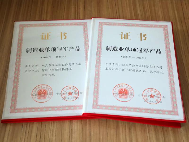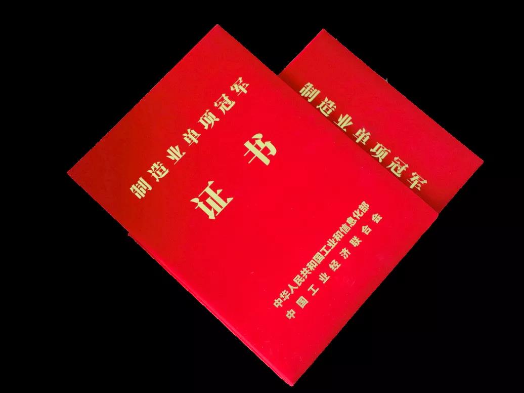 兩本中國制造業(yè)單項冠軍產(chǎn)品證書