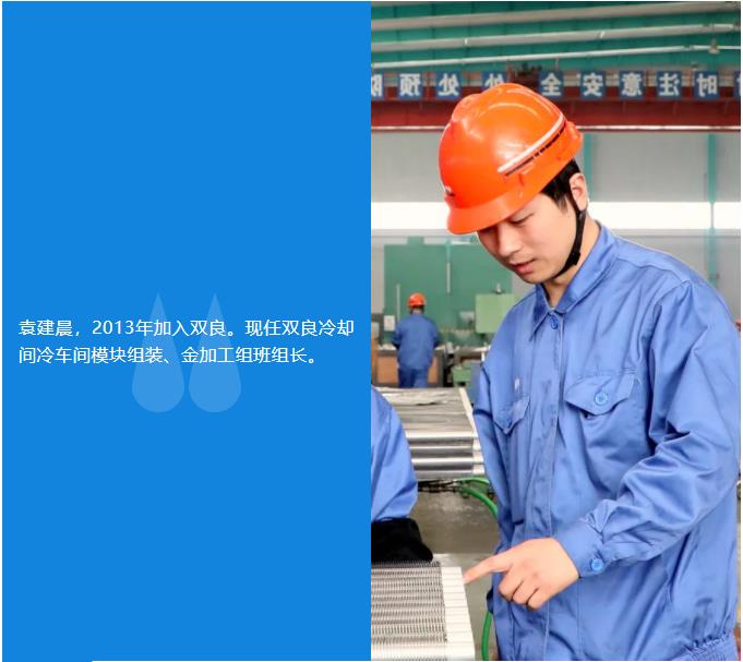袁建晨,2013年加入雙良?,F(xiàn)任雙良冷卻間冷車間模塊組裝、金加工組班組長。