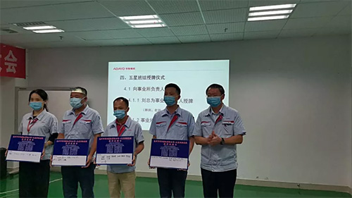 劉總(右一)為各事業(yè)所負(fù)責(zé)人授牌
