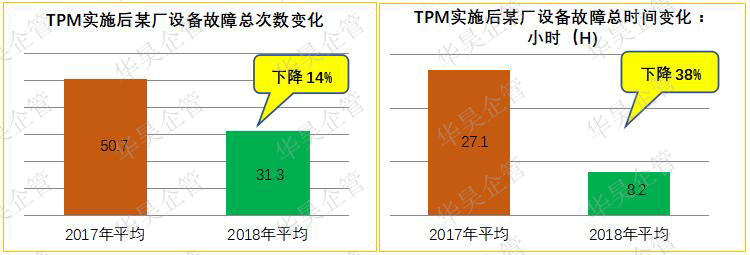 如華昊企管顧問在某知名企業(yè)輔導(dǎo)精益TPM活動(dòng)之后,設(shè)備總指標(biāo)的變化情況如下: