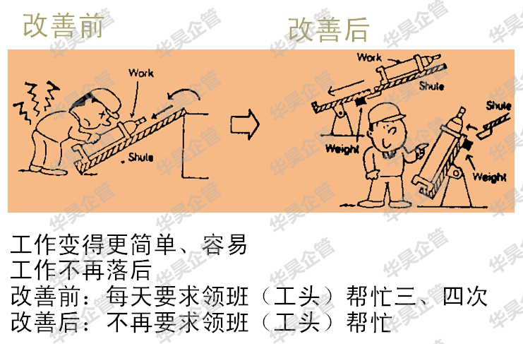 按照改善的優(yōu)先順序,對(duì)于人與方法的改善最快見效。動(dòng)作改善就是以減輕拉動(dòng)負(fù)荷,提升動(dòng)作有效性為目標(biāo),進(jìn)行改善。