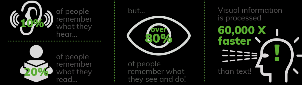▲ 視覺(jué)記憶效率遠(yuǎn)遠(yuǎn)大于聽(tīng)覺(jué)和閱讀,例如汽車(chē)數(shù)字時(shí)速表和表盤(pán)時(shí)速表
