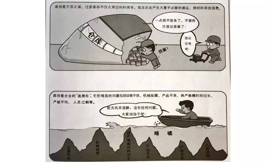 “庫存是萬惡之源”,過多的庫存不僅占用空間和資金,產(chǎn)生大量不必要的搬運、堆積和尋找,而且還掩蓋了企業(yè)內(nèi)部的各種問題。例如,生產(chǎn)周期不合理、設(shè)備故障太多、不良品太多等。如果有了充足的庫存,出現(xiàn)問題時可以有庫存先頂上,問題就可以慢慢解決甚至不用解決,最起碼不必現(xiàn)在急需解決。久而久之,就埋下了隱患的種子。