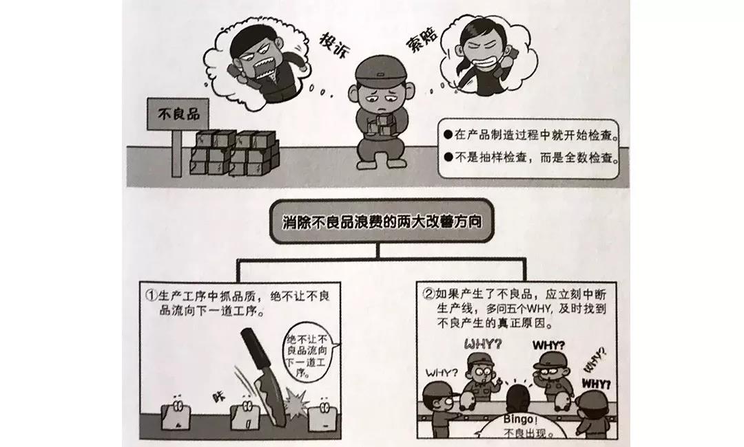 不良品浪費是指持續(xù)生產(chǎn)出不合格產(chǎn)品, 在產(chǎn)品檢驗、報廢或返修活動中所造成的材料、機器和人工等浪費。如果不良品流向市場, 則會弓|起顧客的投訴和產(chǎn)品召回等更大的損失。消除不良品浪費的兩大改善方向為:
