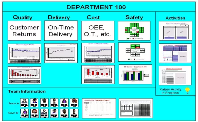 可視化將現(xiàn)場績效管理目標(biāo)很清晰地展示出來,包括品質(zhì)、交貨、成本以及安全等領(lǐng)域。公司的績效目標(biāo)被分解到生產(chǎn)一線,落實(shí)到每個班組,實(shí)際的績效表現(xiàn)數(shù)據(jù)被每月、每周甚至每天更新呈現(xiàn),所有人都能很清楚地觀察到自己每天的行為如何對團(tuán)隊(duì)的績效產(chǎn)生影響,形成績效結(jié)果測量、原因分析和改進(jìn)的閉環(huán)。這超過了任何一種復(fù)雜的績效管理體系和制度的效果,再好的績效管理制度如果不能落實(shí)到一線,只能是一句空話。