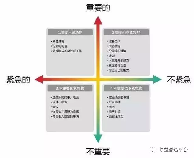 優(yōu)先順序=重要性*緊迫性,在進(jìn)行時(shí)間安排時(shí),應(yīng)權(quán)衡各種事情的優(yōu)先順序,要學(xué)會(huì)“彈鋼琴”。