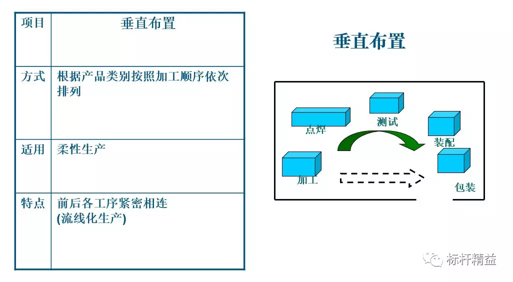 單件流是以“垂直式布置”方式:根據(jù)產(chǎn)品的類別,將生產(chǎn)各個(gè)制程一個(gè)接一個(gè)緊密地銜接在一起,前制程做完一個(gè)產(chǎn)品,即刻流到下一個(gè)制程繼續(xù)加工,直至完成所有工序,似流水般,連續(xù)不斷。