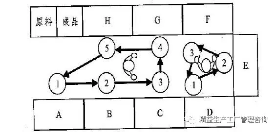 大部分作業(yè)員是右撇子,因此如果逆時(shí)針排布的話,當(dāng)員工進(jìn)行下一道加工作業(yè)時(shí),工裝夾具或者零部件在左側(cè),員工作業(yè)并不方便,這也正是逆時(shí)針的目的:?jiǎn)T工走到下一工位——巡回的目的也就達(dá)到了。