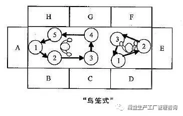 鳥籠型布局往往沒有考慮到物流、人流順暢的結(jié)果,這種布局錯(cuò)誤的用機(jī)器設(shè)備或者工作臺(tái)把作業(yè)員圍在中間,使得物流不順暢,在制品增加,單元與單元之間的相互支援也變得幾乎不可能。