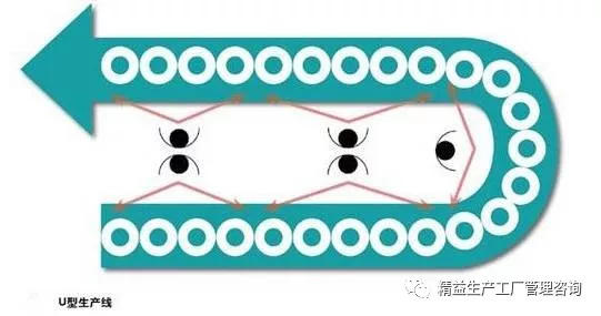 而在U型布置中,生產(chǎn)線擺放如U型,一條流水線的出口和人口在相同位置,一個(gè)加工位置中可能同時(shí)包含幾個(gè)工藝,所以U型布置需要培養(yǎng)多能工。它減少了步行浪費(fèi)和工位數(shù),從而縮短周期、提高效率,同時(shí)也減少了操作工,降低了成本等。