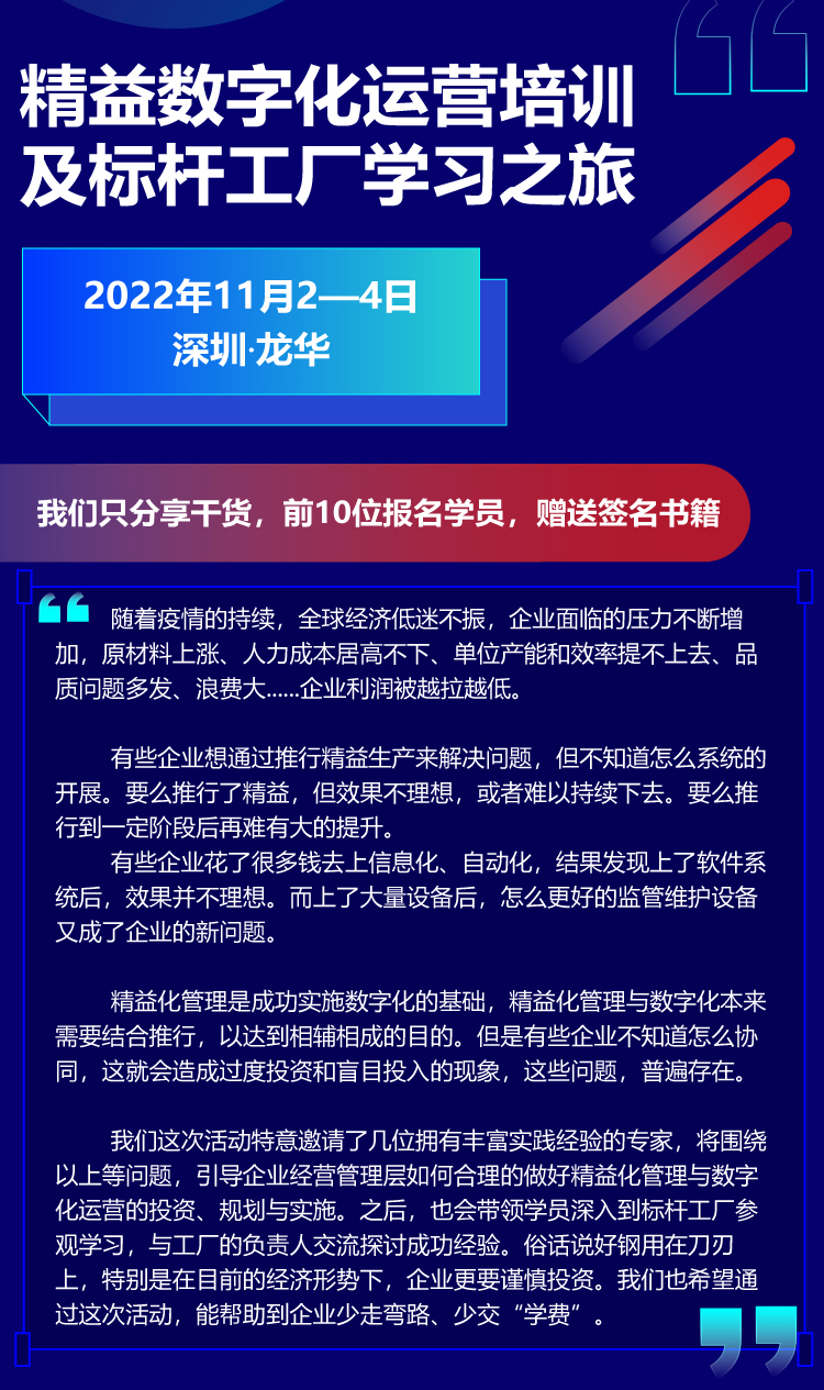 首頁 > 研究與洞見 > 方法論基礎 精益數(shù)字化運營培訓及標桿工廠學習之旅火熱報名中! 來源:華昊企管 發(fā)布時間:2022-08-29 上一篇:六西格瑪 實施及推行參考方案 下一篇:工作滿意度:它是什么以及為什么它對專業(yè)人士很重要