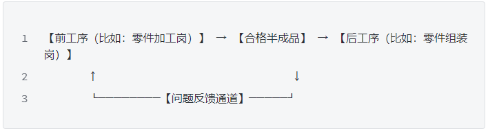 - “售后” 要及時(shí)后工序發(fā)現(xiàn)問題,要能快速反饋給前工序,前工序要立刻整改 —— 就像客戶投訴后商家及時(shí)處理,避免同樣的問題反復(fù)出現(xiàn)。