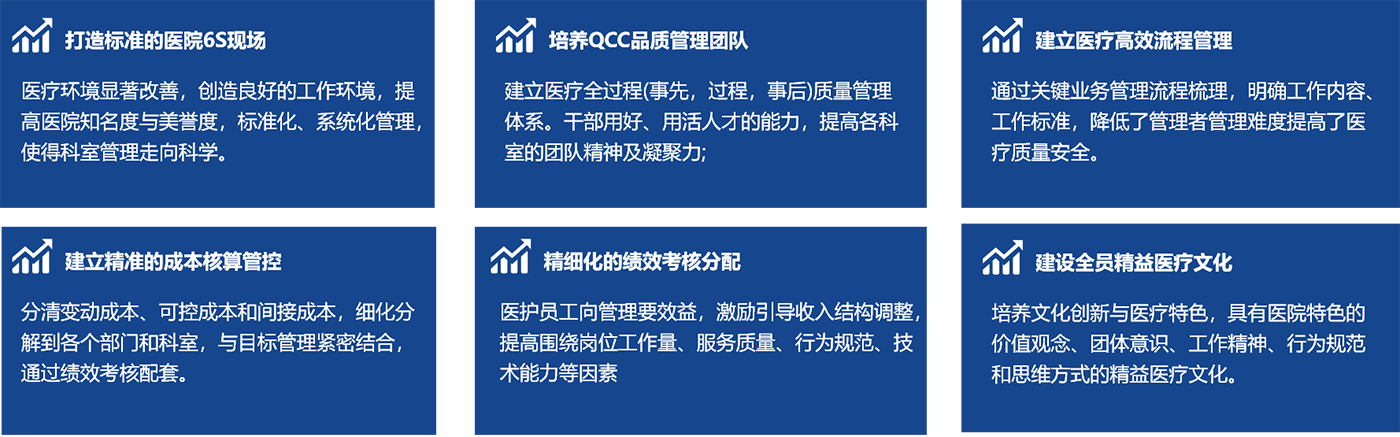 - 為國內(nèi)多家三甲醫(yī)院提供精益醫(yī)療管理服務,系統(tǒng)帶入一整套科學管理工具,改善患者就醫(yī)體驗,提升服務質(zhì)量,確保醫(yī)療安全,向管理要效益,實現(xiàn)患者、員工、醫(yī)院三方共贏。