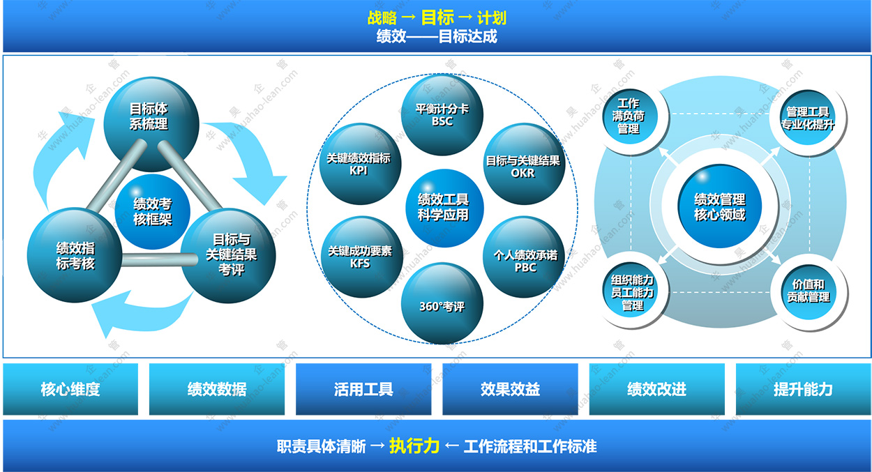 精益績效管理,不同于企業(yè)一般的績效評估,不是簡單的任務(wù)管理,而是管理者和員工就工作目標與如何高效實現(xiàn)目標達成共識的過程。它是站在股東和客戶角度上的一種價值增值的思考過程,作用于當前的流程,使得流程優(yōu)化并且使信息技術(shù)在商務(wù)活動中靈活運用。其強調(diào)系統(tǒng)變革面向流程思考(考慮做什么先于思考怎樣做)。精益績效管理的目標體系是根據(jù)企業(yè)的戰(zhàn)略目標導出,圍繞組織流程開展的。它針對流程設(shè)定目標或關(guān)鍵績效指標(KPI),層層映射下去,激勵每位員工通過自身的努力來完成組織或職位的目標。通過績效管理過程,績效目標體系落實到了管理者和員工身上。然后就是建立統(tǒng)一、完備的績效評估制度,最后成立由公司各層負責人組成的管理委員會管理監(jiān)督績效實施情況,形成有效的績效組織責任體系。對于企業(yè)信息化來說,盲目引入高科技軟件并在事后進行績效評估并不是有效的績效管理方法,單純的績效評估僅僅反映過去的績效,采用秋后算帳的形式,只關(guān)注工作的結(jié)果;而有效的績效管理從一開始便有計劃地展開,更強調(diào)未來績效的提審,注重工作結(jié)果的同時不偏廢工作過程,從而能夠解決問題,有效地實現(xiàn)系統(tǒng)優(yōu)化。
