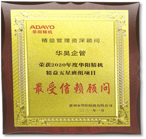 - 華陽(yáng)精機(jī)授予:精益五星班組最受信賴顧問