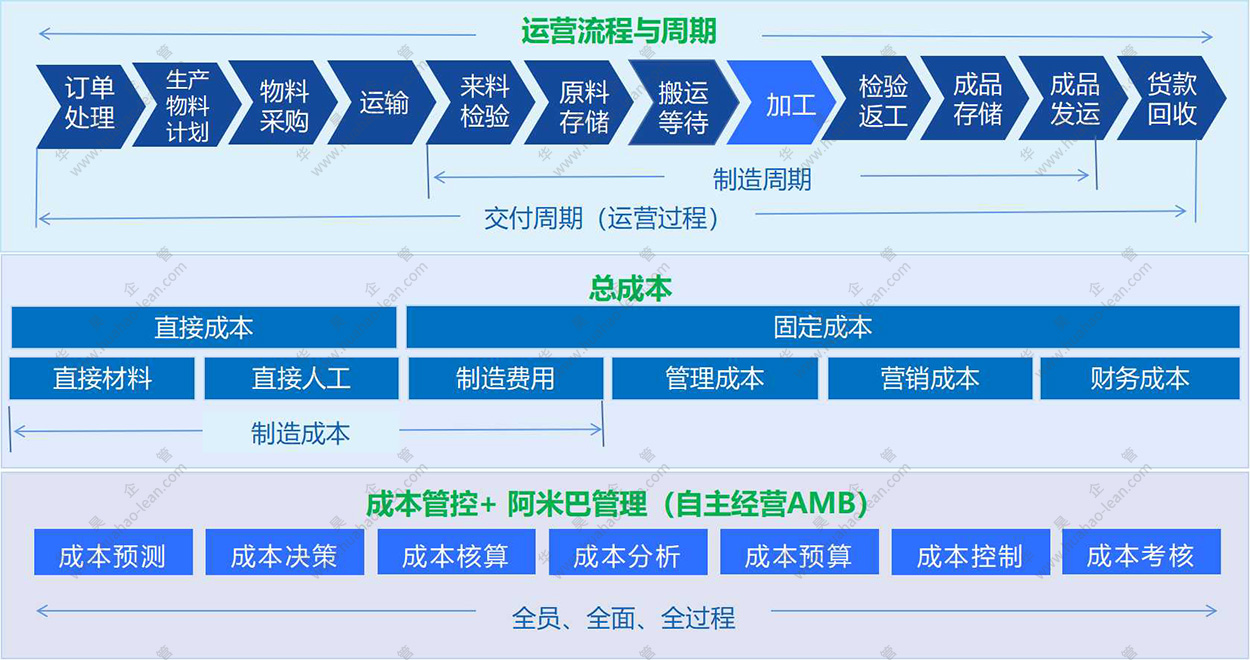 公司經(jīng)營的核心是滿足客戶的同時,實現(xiàn)盈利。持續(xù)獲得利潤是公司永續(xù)經(jīng)營的根本。滿足客戶取決于性價比,而價格決策來源于企業(yè)經(jīng)營的成本。要降低企業(yè)經(jīng)營的成本,僅僅依靠經(jīng)營層及財務(wù)人員是不夠的。企業(yè)的全面成本管理TCM中的“全面”主要體現(xiàn)“三全性”,即全員、全面、全過程,從產(chǎn)品的生產(chǎn)管理組織流程每一個環(huán)節(jié),每一個工藝、每一個部門、甚至生產(chǎn)現(xiàn)場每一個工位操作工,都能參與到成本管理中。全面成本管理TCM體系就是:以成本管理的科學(xué)性為依據(jù),建立由全員參與,包含業(yè)管理全過程的、全面的成本管理體系,并匯集全員智慧,發(fā)揮全員主動性,讓各部門全體員工自主改善不斷降低成本,使經(jīng)營層與各部門員工具有降低成本的一致性,謀求在最低成本狀態(tài)下,進行生產(chǎn)管理與組織運做。
