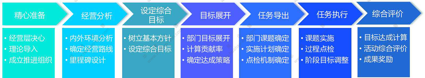 以“Top-Down”,“重點(diǎn)主義”作為基本思想;各部門活動(dòng)與經(jīng)營(yíng)目標(biāo)掛鉤,并明確此活動(dòng)對(duì)目標(biāo)達(dá)成作出了多少貢獻(xiàn);有效的構(gòu)筑具有活力的實(shí)施體制;為切實(shí)有效的實(shí)施提高生產(chǎn)性的課題,對(duì)具體達(dá)成目標(biāo)和效率的基準(zhǔn)進(jìn)行提示。